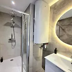 Geniet van het comfort van een badkamer in Grand 3 Chambres - Boheme Chic Pres Du Stade appartement, dat met een haardroger is uitgerust. Er is ook een apart toilet en een douche.